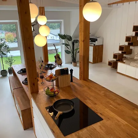 Design Maisonette - Architekten Loftアパートには、調理して自家製の食事を楽しむことができる台所が備わっています。 最寄りのバス停Schwall haltestelleは、宿泊施設から0.6km先にあります。